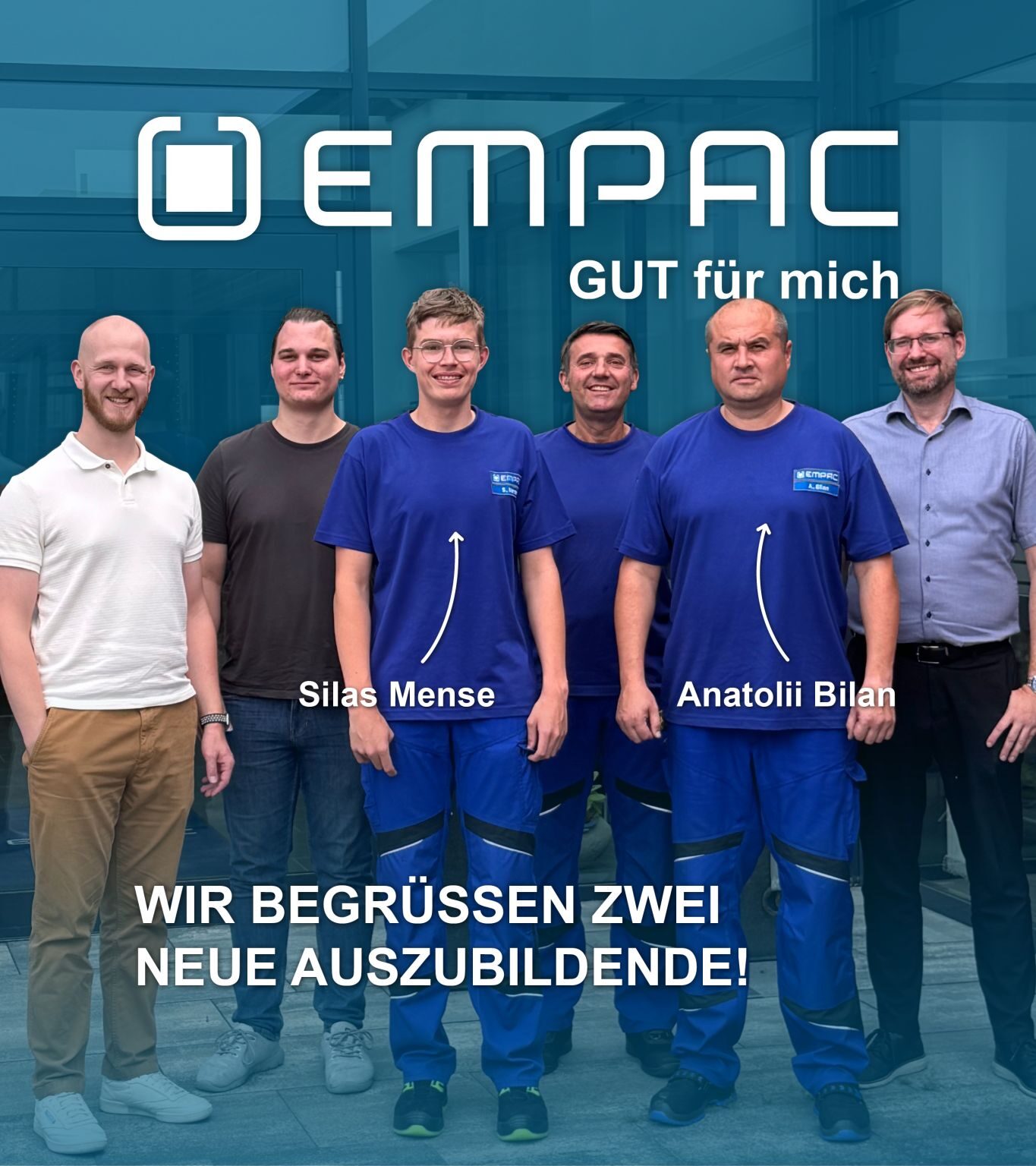 Willkommen bei EMPAC! Zum 01. August haben Silas und Anatolii ihre Ausbildung bei uns begonnen. Wir freuen uns sehr, euch ...